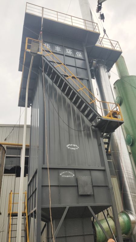 HMC型脈沖單機除塵器是新鄉市華豐環保機械設備有限公司消化吸收國內外同類產品優點,經改進后設計而成的小型袋除塵器,除塵器采用脈沖噴吹清灰,具有清灰效果好、凈化效率高、處理風量大、濾袋壽命長、維修工作量小、運行安全可靠的優點。廣泛應用于冶金、建材、機械、化工、礦山等各種工礦企業非纖維性工業粉塵的除塵凈化與物料的回收。本系列除塵器共有六個規格。每種規格又可分為標準帶灰斗式A型和敞開法蘭式(無灰斗)B型兩種。HMC—□—(A、B)型脈沖單機除塵器型號說明:H—單機除塵器;MC—脈沖噴吹;□—表示濾袋數量;A—表示帶灰斗和翻板閥;B—表示法蘭式。1.HMC型脈沖單機除塵器的結構與工作原理(1)結構    HMC型脈沖單機除塵器主要由過濾室、濾袋、凈氣室、灰斗、翻板閥、脈沖噴吹清灰裝置、電控箱等組成。箱體全部采用焊接結構。檢修門用泡沫橡膠條密封。(2)除塵器的工作原理    含塵氣體由灰斗(或下部敞開式法蘭)進入過濾室,較粗顆粒直接落入灰斗或灰倉內。含塵氣體經濾袋過濾,粉塵阻留于濾袋表面,凈氣經袋口到凈氣室,由風機排入大氣。當濾袋表面的粉塵不斷增加,導致設備阻力上升到認定值時,時間繼電器(或微差壓控制器)輸出信號。程控儀開始工作,逐個開啟脈沖閥,使壓縮空氣通過噴口對濾袋進行噴吹清灰,使濾袋突然膨脹,在反向氣流作用下,附于濾袋表面的粉塵迅速脫離濾袋落入灰斗(或灰倉)。粉塵由翻板閥排出。噴吹只對濾袋逐排清灰,不噴吹的其他排濾袋仍正常進行過濾不停風機。